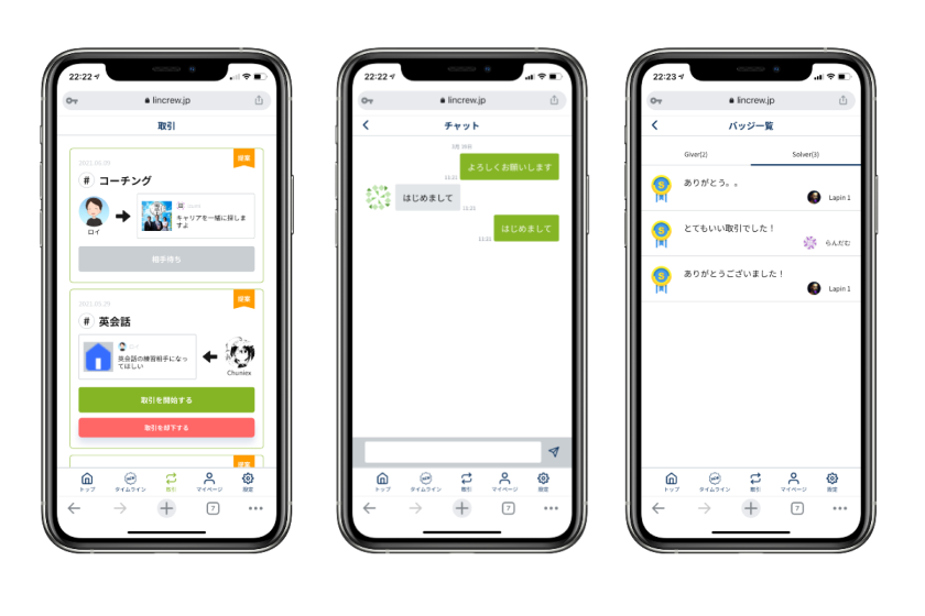 取引→チャット→評価、無料、